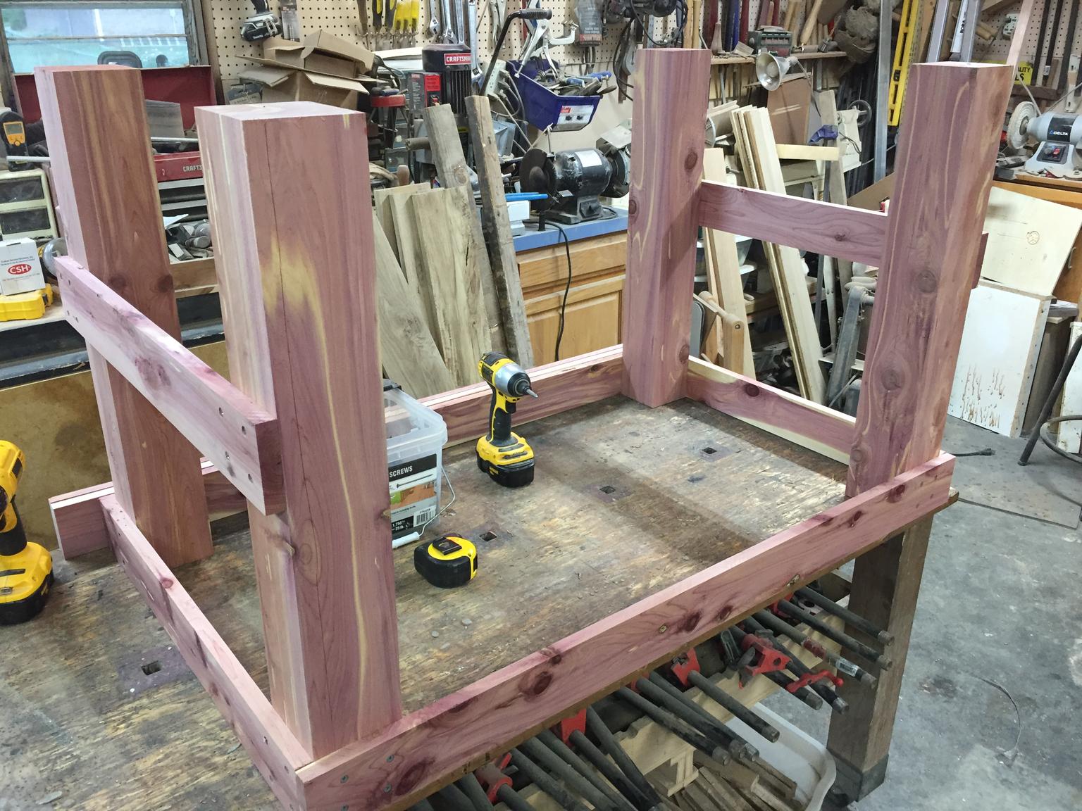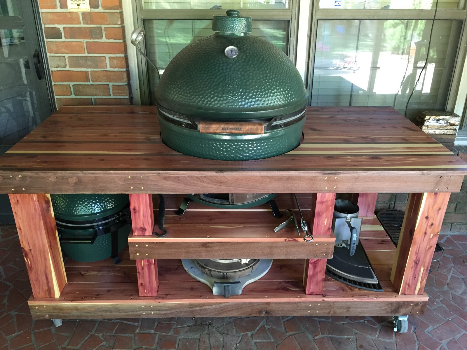 | 358 | Easern Redcedar Table Green Egg barbecue table in production, by John Moody Woodworks Attribution: Craftsman John Moody Source: http://www.johnmoodywoodworks.com/index.html |