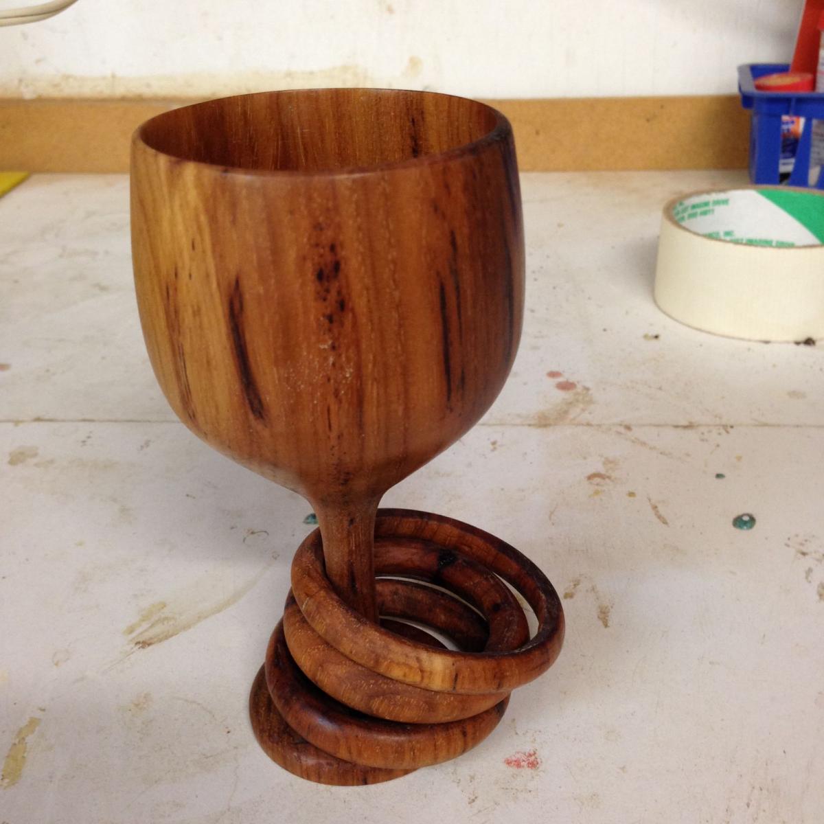 | 531 | Pecan Goblet and Rings Turned Pecan rings and goblet by Gerald Lawrence. See more work at www.threeringswoodshop.com Reference: “Gerald.” The Patriot Woodworker, https://thepatriotwoodworker.com/profile/4348-gerald/. Accessed 17 Jan. 2020. |