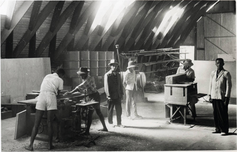 Craft Centre In Ambositra Madagascar Craft centre of the Société des missions évangéliques de Paris (Paris evangelical missionary society) in Ambositra. Some men are working in a workshop.
