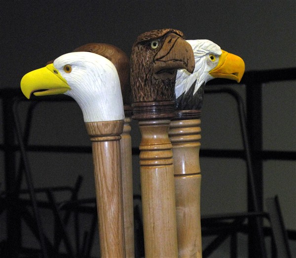 Eagle Cane Handle Intricately carved bald eagles top each eagle cane presented to troops who have suffered severe lower-extremity wounds in Iraq or Afghanistan. The troops receive the canes through the Eagle Cane Project.